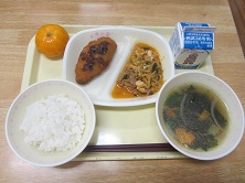 牛乳 ご飯 アジフライ 豚肉と切り干しのキムチ炒め