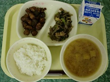 しめじとこんにゃくのピリカラ炒め みそ汁