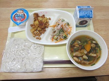 牛乳 肉うどん 大豆とポテトの揚げ煮