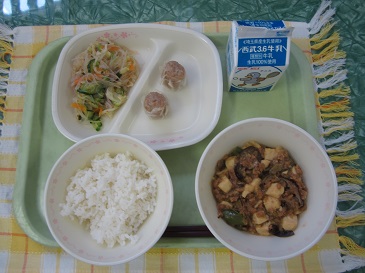 牛乳・ご飯・麻婆茄子豆腐