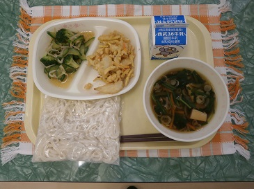 牛乳・肉うどん・かき揚げ