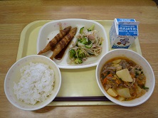 牛乳 発芽玄米入りごはん 豚肉と切り干しのキムチ炒め