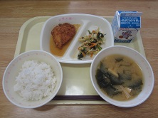 牛乳 カツ丼 じゃが芋のみそ汁 からし和え