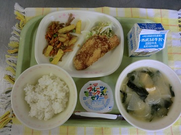 じゃが芋の金平煮・味噌汁・ゼリー
