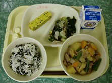 牛乳 わかめご飯 肉じゃが