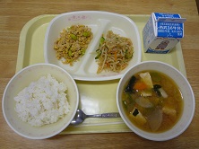 牛乳 三色そぼろごはん 切り干し大根のサラダ