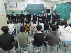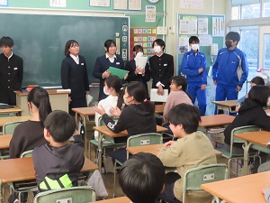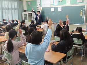 来年入学予定の小学6年生が音楽・数学・保健体育の授業体験をした後で、在校生徒に中学校生活についての質問をしました。