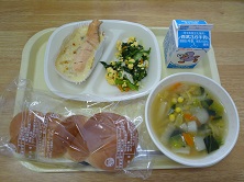 白菜とベーコンのスープ ほうれんそうと卵のサラダ