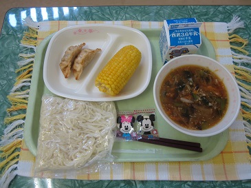 牛乳・ゴマ味噌ラーメン・揚げ餃子