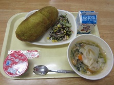 牛乳 抹茶入りきな粉揚げパン ひじき入りサラダ