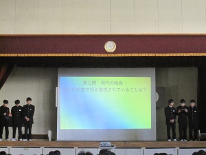 クイズや寸劇により、給食にまつわる?(ハテナ)なことについて、考えを深めることができました。