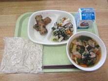牛乳 肉うどん ちくわの石垣揚げ