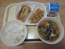 牛乳 ご飯 豚汁 さばの味噌マヨネーズ焼き