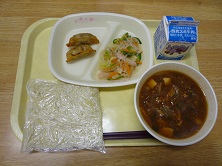 牛乳 麻婆ラーメン 揚げぎょうざ