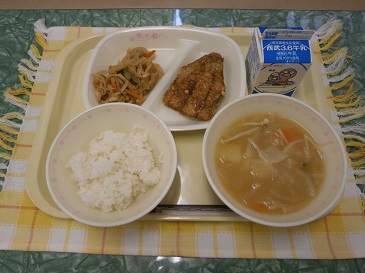 切干大根の炒り煮・じゃが芋とエノキの味噌汁