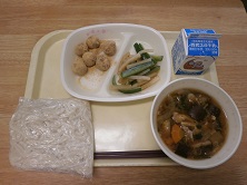 牛乳 田舎うどん 白玉団子のきな粉和え