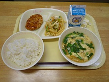 牛乳 ご飯 豆腐ハンバーグ マカロニサラダ