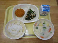 牛乳 ご飯 メンチカツ 秋の味覚シチュー