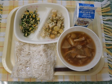 牛乳・けんちんうどん・青のりポテトビーンズ