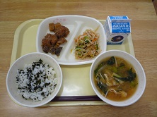 牛乳 わかめごはん 豚肉と高野豆腐のごまだれ